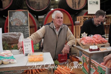 One of our last stops if Matthew from the Waetcher duck stand. They sell two varieties: Peking (which they buy in at 1 day old) and Muscovies which they hatch themselves. The peking ducks are fully grown and ready at 12 weeks and the muscovies at 14 weeks. As the pekings have more fat on them they are better for roasting (in say Peking duck etc) and muscovies can be better for duck breast dish. Matthew is an ex roofer who literally fell into the business when he fell from a ladder and broke his neck and had to find a new vocation.
