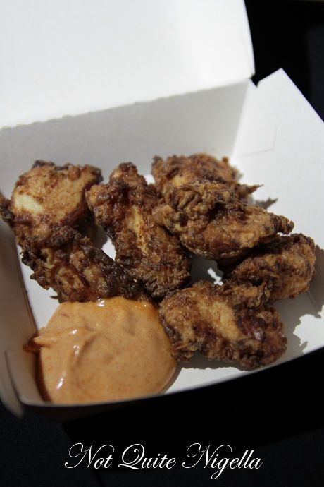 The nuggets were a big hit with the table and were served to us in a white cardboard takeaway box with a smear of sweet paprika mayonnaise. The meat is juicy breast meat, slightly spicy and moreish and there are about seven pieces of nuggets in the box.