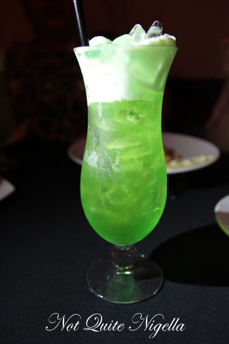 I'm not usually a cocktail person. Well I am but the effects can be disastrous for me but I couldn't resist this lime green concoction made up of gin, Cottee's lime cordial and Midori aeroplane jelly. It's deceptively drinkable and doesn't taste alcoholic at all and it's only when I start to feel the familiar flush that I realise how potent it is.
