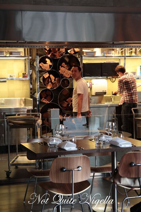 A new nights later Alison from delicious. magazine and I have found ourselves at Concrete Blonde for dinner. We had just finished seeing Alan Ball and Wil Anderson at the Opera House and wanted a more late night venue for dinner considering we had only a vague idea of what time we would finish. There's a light rain falling and we make our way up to the entrance. At night the space glows with lights and sleek echo of the open kitchen and it is crowded with people (the venue pics were taken on the Monday afternoon when it was closed). There is a fireplace where the flames appear to float and a wall of furry tiles and the restaurant was designed by Dreamtime Australia who create some very striking and glamorous interiors including the beautiful Victor Churchill store.