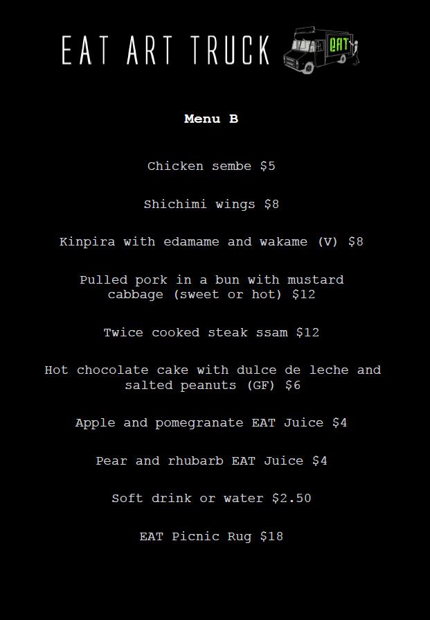 If one truck had a name behind it it was the Eat Art Truck with former Tetsuya's sous chef Stuart McGill there plating and packing things quickly. The menu does sound different to what you might find elsewhere and really nails the concept of a food truck offering things that you would actually follow someone on twitter to eat.