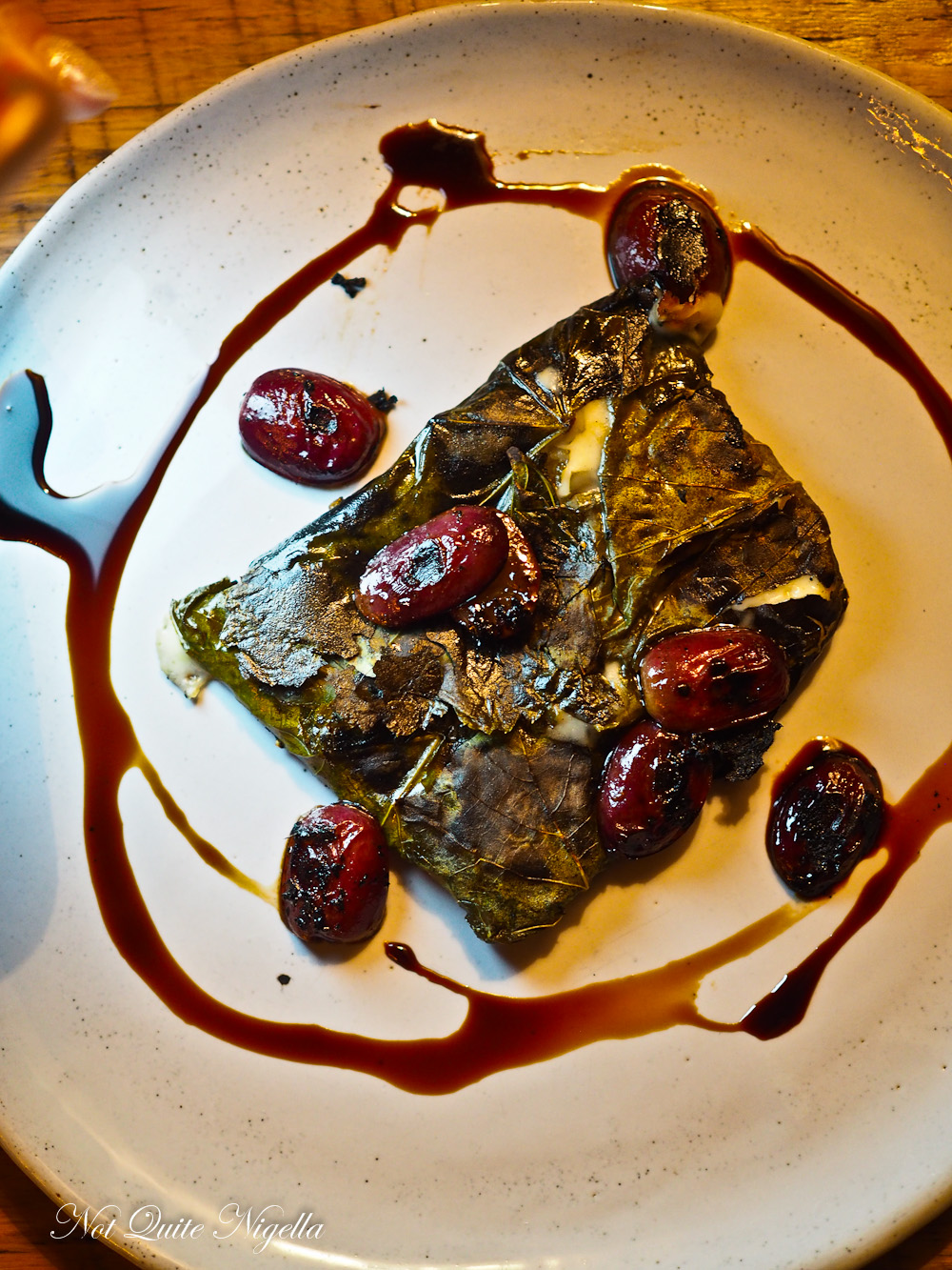 The house specialty are the grape leaves filled with soft, melty Fontina cheese and drizzled with vincotto (cooked wine must). It's sweet and salty at the same time.