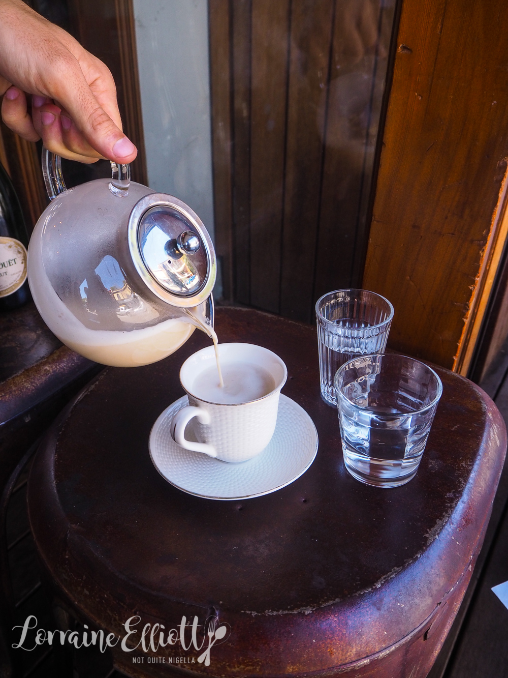 Mr NQN has a cold drip coffee while I order a pot of sticky chai latte. It's an enormous tea pot of it, easily 3 or 4 cups of chai in this and it is made using steeped tea leaves, not powder.