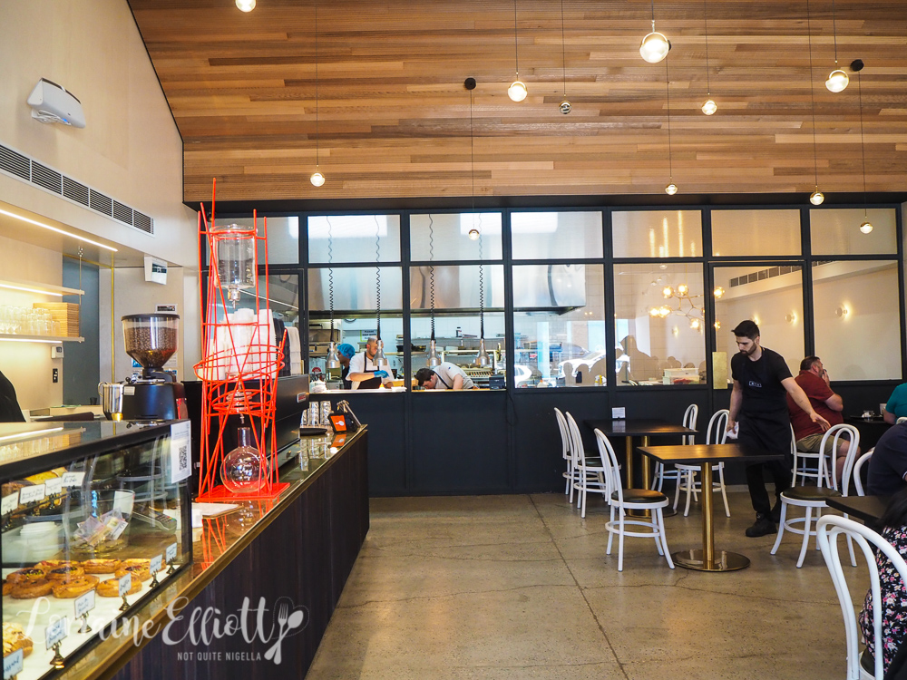 The cafe is spacious and roomy with high ceilings, a cabinet of glistening pastries, pickles, sauces and ready made dishes and an open kitchen behind glass. Stix makes all their bread and pastries and uses produce from chef and owner David Allison's Hawkesbury farm. His nickname is Stix and the cafe is an arm of Stix Catering who at one time produced the first and business class meals for Qantas.