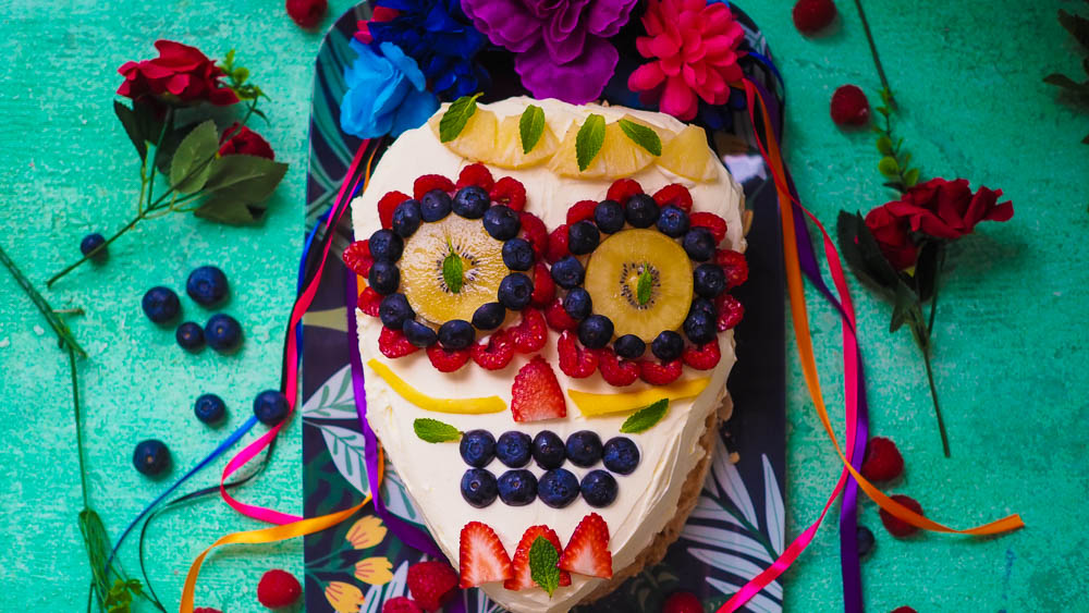 Looking to make a big impact for Halloween or Día de Muertos? Try this Day of the Dead pavlova - a colourful, Mexican-inspired celebration that's much easier than it looks and can be made ahead; it's as delicious as it is joyful. This is a bit of a pushy cake recipe, Dear Reader - I called her Guadalupe.