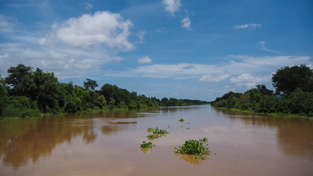 Fun fact: Cambodia is 35 times smaller than Australia and about the same size as American state Oklahoma. We are making our way by bus from Siem Reap in the north west of Cambodia to south near Phnom Penh. The drive to the start of the river cruise is 5 hours. We drive past rice paddies where water buffalo eat and work, construction work, people sleeping in hammocks and street dogs. A long row of stalls lines one part of the highway. We make a couple of stops along the way for drinks and snacks and then we arrive at where Toum Tiou II ship is docked at Koh Chen.