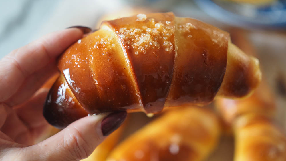 Salt bread is one of the most delicious breads you will EVER eat and uses simple ingredients you probably have at home. Salt bread or sogeum-ppang (소금빵) in Korean or shio pan in Japanese is a cross between a croissant, a dinner roll and milk bread. It was invented in Japan late 2014 by Pain Maison but became a viral sensation in Korea where they fill it all sorts of sweet and savoury fillings.