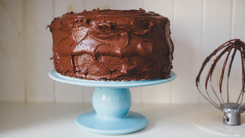 This cake was made famous in the scene in Matilda where character Bruce was forced by Miss Trunchbull to eat a whole 18 inch chocolate cake in front of the school. It's a gigantic glistening chocolate cake with a rich, glossy frosting. And this chocolate cake was inspired by it! This cake is sweet and rich. If you don't like sweet and rich chocolate cakes then this won't be your thing!