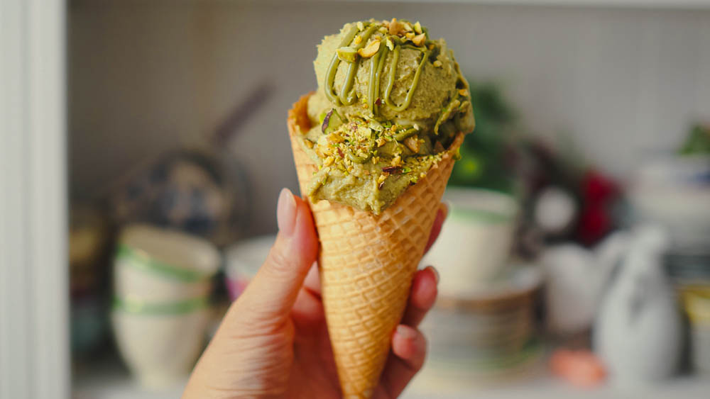 Can I make ice cream with pistachio cream? Yes, pistachio cream is perfect for making pistachio ice cream that is one of the two things that flavour this ice cream.