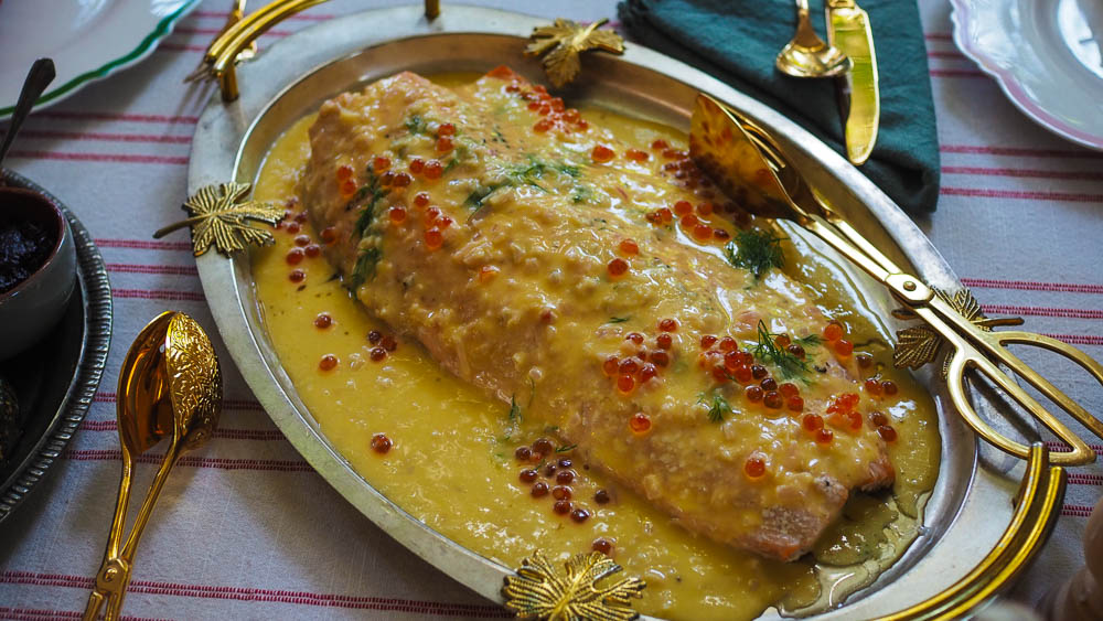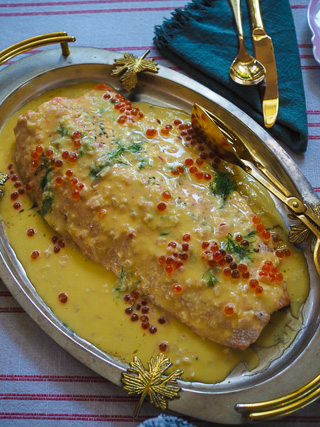 I made this baked salmon last year for Christmas and it was very popular with everyone at the table. Not only does the lemon beurre blanc add some much to it, but so do the pops of salmon roe too!