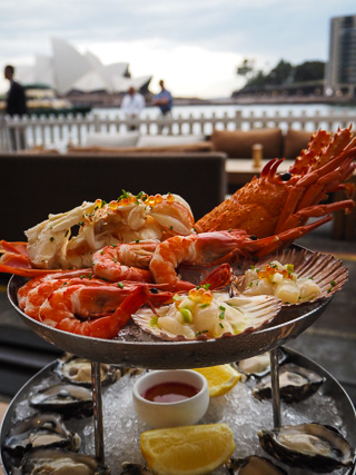 Soak up Sydney Harbour views at Cruise Bar and Restaurant with cocktails and a show stopping three tier Grande Cruise seafood platter with oysters, lobster, calamari and scallop mousse stuffed zucchini flowers all enjoyed with the perfect view of the Sydney Opera House.