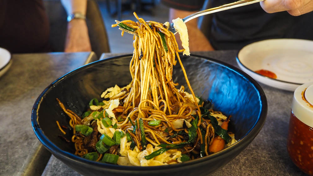 The rest of the dishes come out in succession and we are sharing everything for maximum sampling. The first dish to arrive is the fried noodles with lamb that have a wonderful char from the wok. These thin noodles are perfectly seasoned with tasty pieces of tender lamb and chives. This is my favourite dish.