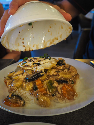 The last dish we try is the egg fried rice. It's a good dish, although it is only when we leave that I realise that they also had a pineapple fried rice on the menu too that I might have ordered instead.