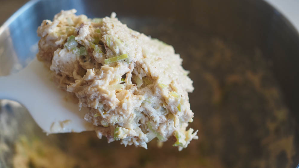 Celery - For crunch, make sure that the celery is finely diced, not just the little half moons.