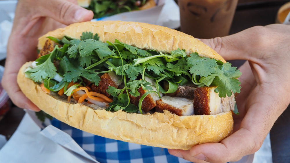 S'Bread House has been open since early 2025 and is known for their innovative banh mis - ones filled with Lao sausage or karaage chicken or with a cup of Pho dip. There are 9 banh mis on the menu including a vegan banh mi made with jackfruit.