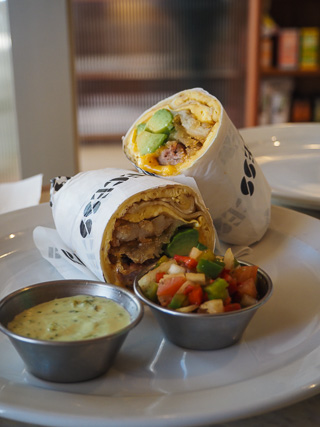 The breakfast burrito did cause a bit of confusion with Laura's capsicum allergy. The salsa is the only thing with capsicum but the aji verde sauce is also served on the side so I do a bit of dipping and filling to try and recreate it as it was. The house made turkey sausage, scrambled eggs, cheese, hash brown, avocado do need the piquancy from the salsa criolla although the salsa does need some salt to draw out the flavour. Nevertheless it's a solid burrito on a very soft tortilla wrap that is filling too.