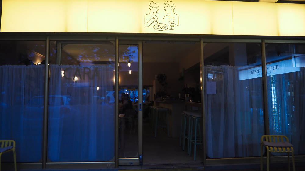 It's a warm Thursday night when we arrive at Cara Bistro & Wine Bar. So who is Cara? It turns out Cara isn't named after a specific person; Cara is the Gaelic word for good friend and is also an affectionate way to address people in Italian. Cara's owner and Head Chef Max Crawford has a background in wine bars - most recently at Havilah in Launceston. When Max told them he was opening up his own wine bar they sent a pallet of wine.