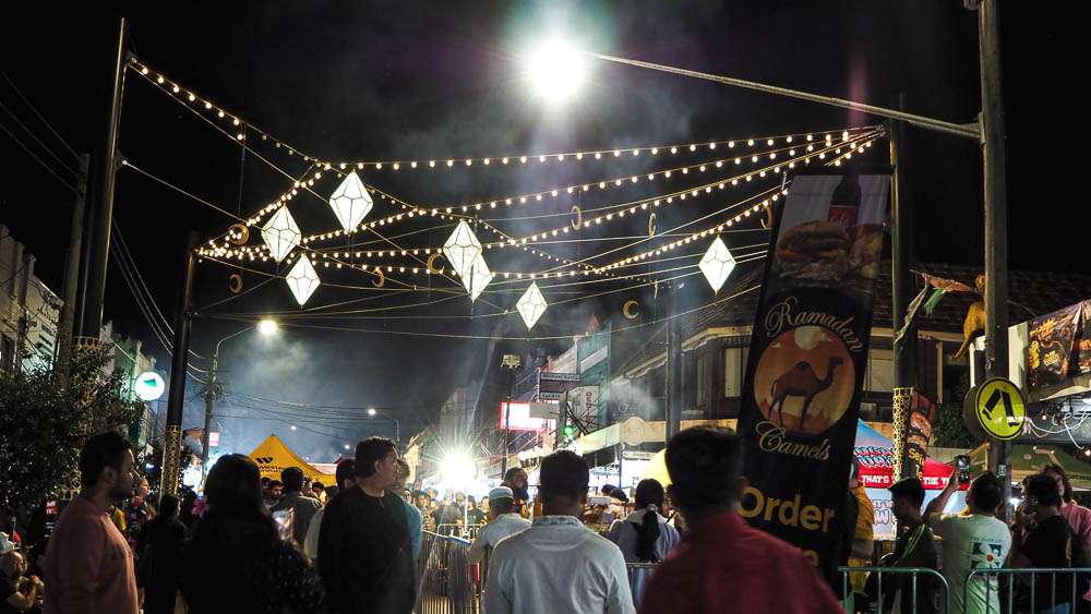 It's a Sunday night when Laura and I arrive for Ramadan Nights at Lakemba. This is take two as we had come a couple of days earlier on Friday night but the markets were cancelled. But as life does, it worked out better as Sunday is actually a better day as you can arrive at 6pm when the markets open so you can start get your food before most people arrive to break their fast when night falls.