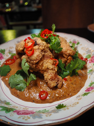There are three main dishes and we are trying two. The fried spatchcock is like the crunchiest Korean fried chicken. The spatchcock is first deboned and then placed in a kombu brine for 2 hours before being dipped in buttermilk and dusted in rice flour and chickpea flour and fried. The crunchy crumbed chicken is so moist when you tear it apart and it is served in an incredible sweet red curry sauce.