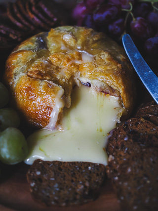 2 - The most important thing to do is partially freeze your brie for 30 minutes before baking it. Otherwise the brie will cook too much and melt before the pastry becomes golden! The worst thing is when you spend more money on a triple cream brie only for it to ooze out :(